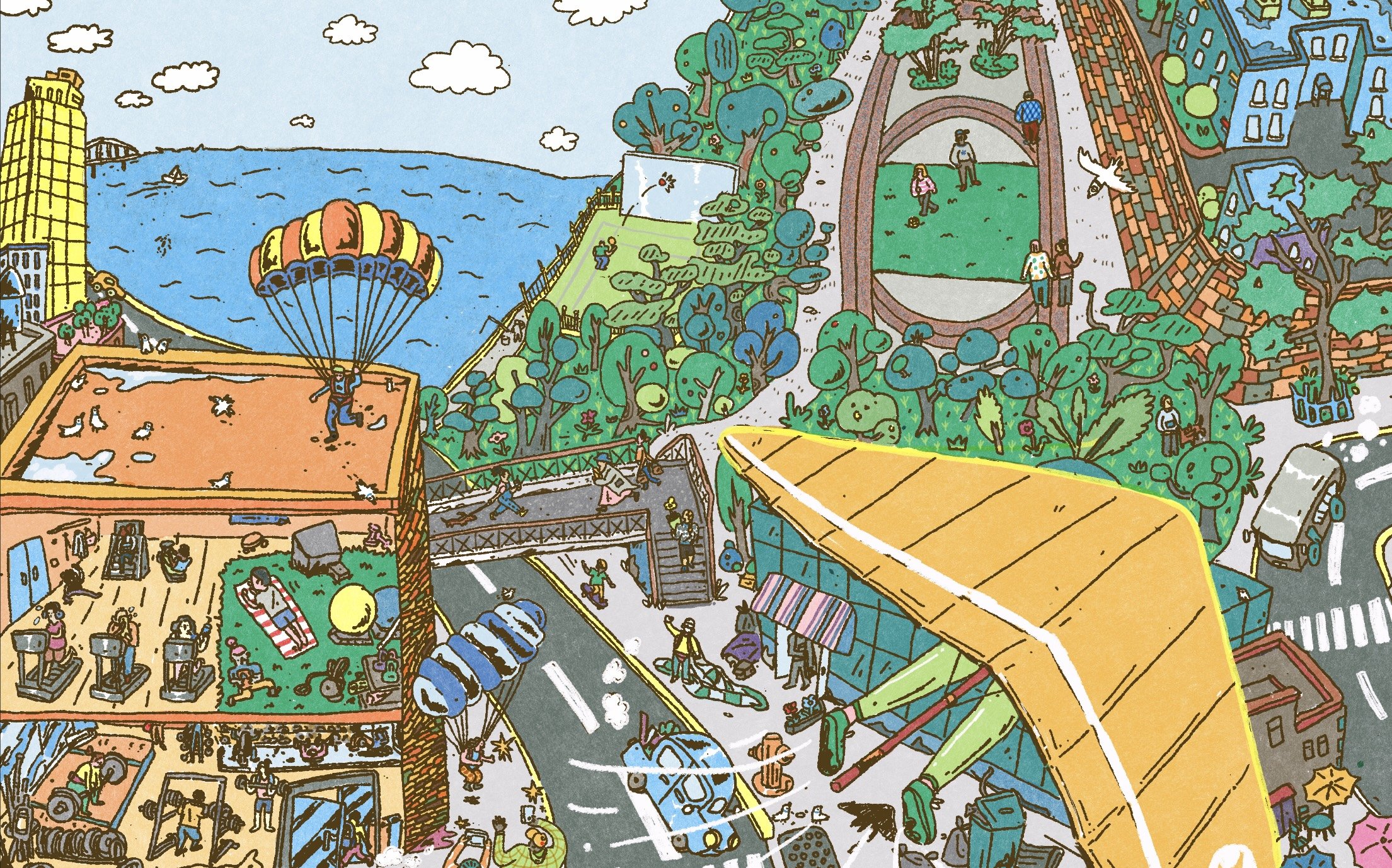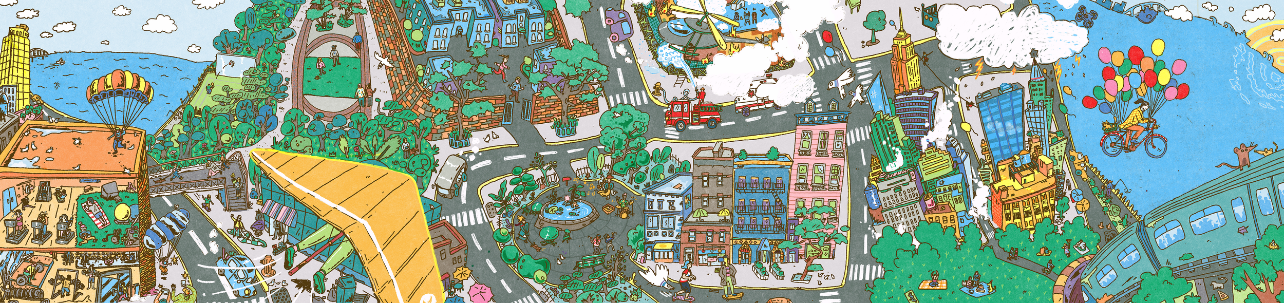 This six-page accordion zine is my way of showing New York’s lively spirit. The city is busy, but it’s also full of energy and adventure. I mixed real street scenes with playful, imaginary elements to give the pages a light, free feeling — something joyful in the middle of all the chaos.